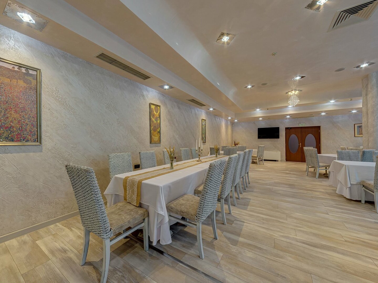 Ресторант “Лайпциг” разполага с две климатизирани и комфортни зали с различен капацитет (50 и 30 места), конфигурация и декорация. Това ги прави мобилни и приспособими, както за фамилни и фирмени тържества, така и за по-камерни и романтични празненства и изискани гурме вечери. Гостите могат да вкусят кулинарни специалитети от националната и европейската кухни, подплатени с разнообразие от маркови напитки.